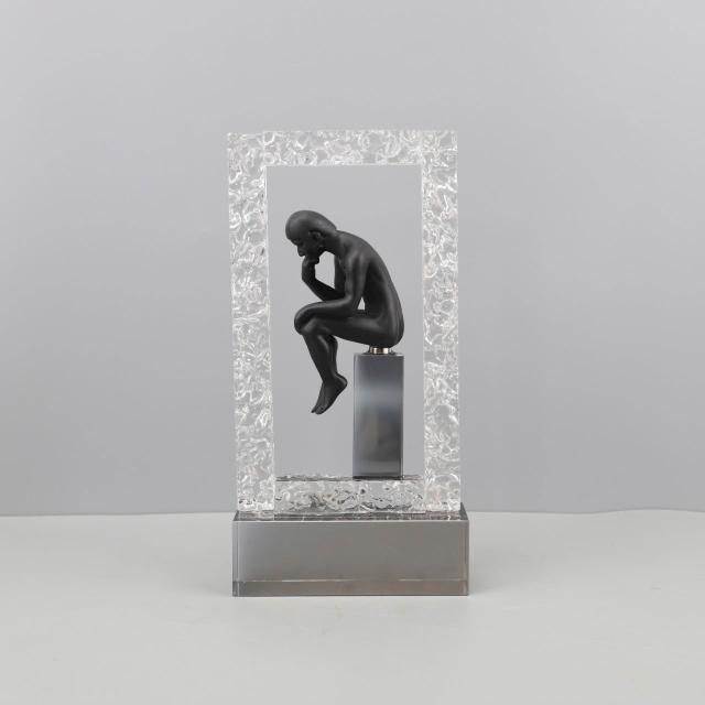 Add a touch of modern elegance to your living space with this Deep Thinker Frame Sculpture. Crafted with a sleek black Matt finish and Crystal Frame accents, this unique piece features a playful design with Artistic Sculpture. Perfect for decorative items. Its sturdy construction and eye-catching design make it a standout addition to any contemporary home decor.