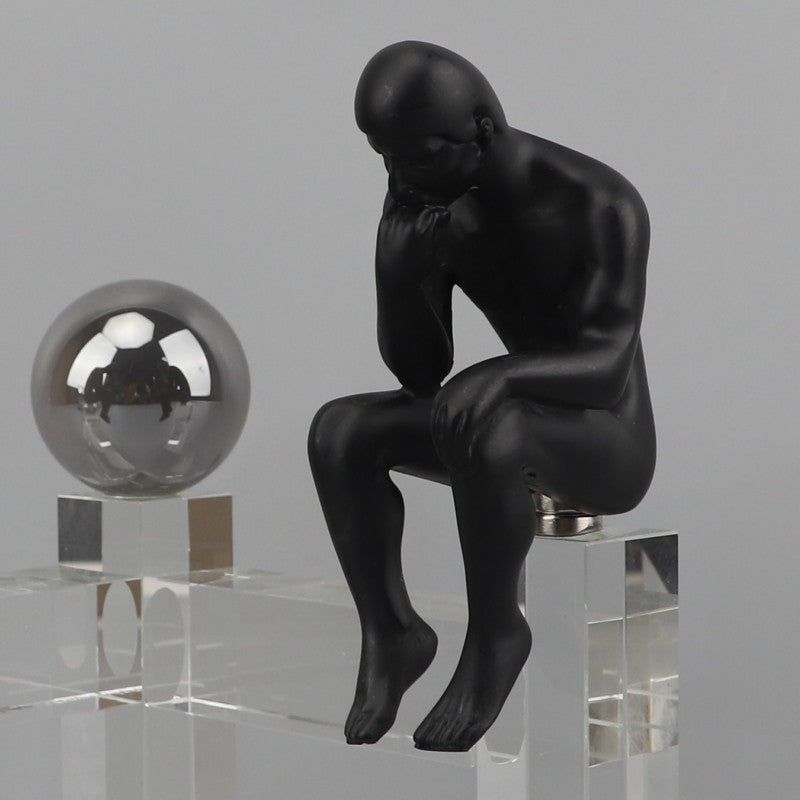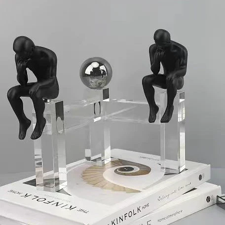 Add a touch of modern elegance to your living space with this Deep Thinker Reflections Sculpture. Crafted with a sleek black Matt finish and Crystal Frame accents, this unique piece features a playful design with Artistic Sculpture. Perfect for decorative items. Its sturdy construction and eye-catching design make it a standout addition to any contemporary home decor.