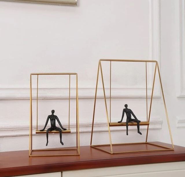 Nordic Swing Human Ornament For Home Décor. Here we have our Nordic Luxury Swing Human Ornament. Absolutely perfect for any home, great as a gift or a present to yourself. You can put this piece in your living room, office, or collection room. It can also be used as a desk decoration and figurine ornament.
